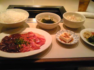 これは絶対反動だと思う、ランチの焼肉定食。カルビとレバーです。