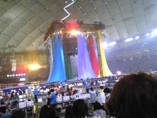 全員の挨拶の後は モニターの付いた大きなやぐらに乗り込んで ドームを一周!(カウ魂使いまわし(笑))